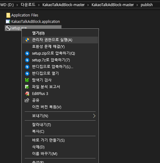 윈도우 탐색기에서 publish 폴더 안에 있는 SETUP.EXE 파일을