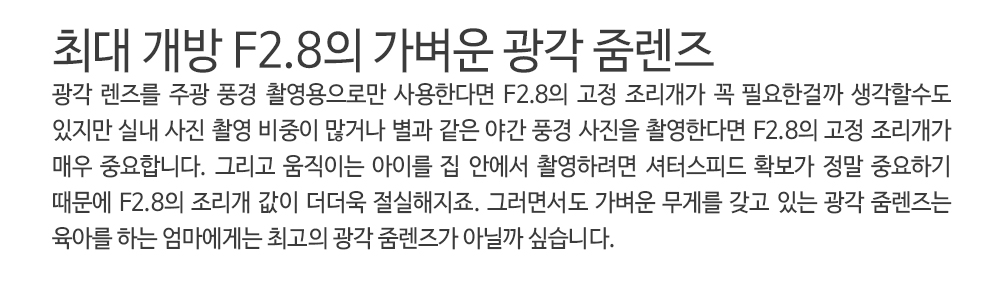 작고 가벼운 광각 줌렌즈를 필요로 하는 렌즈!