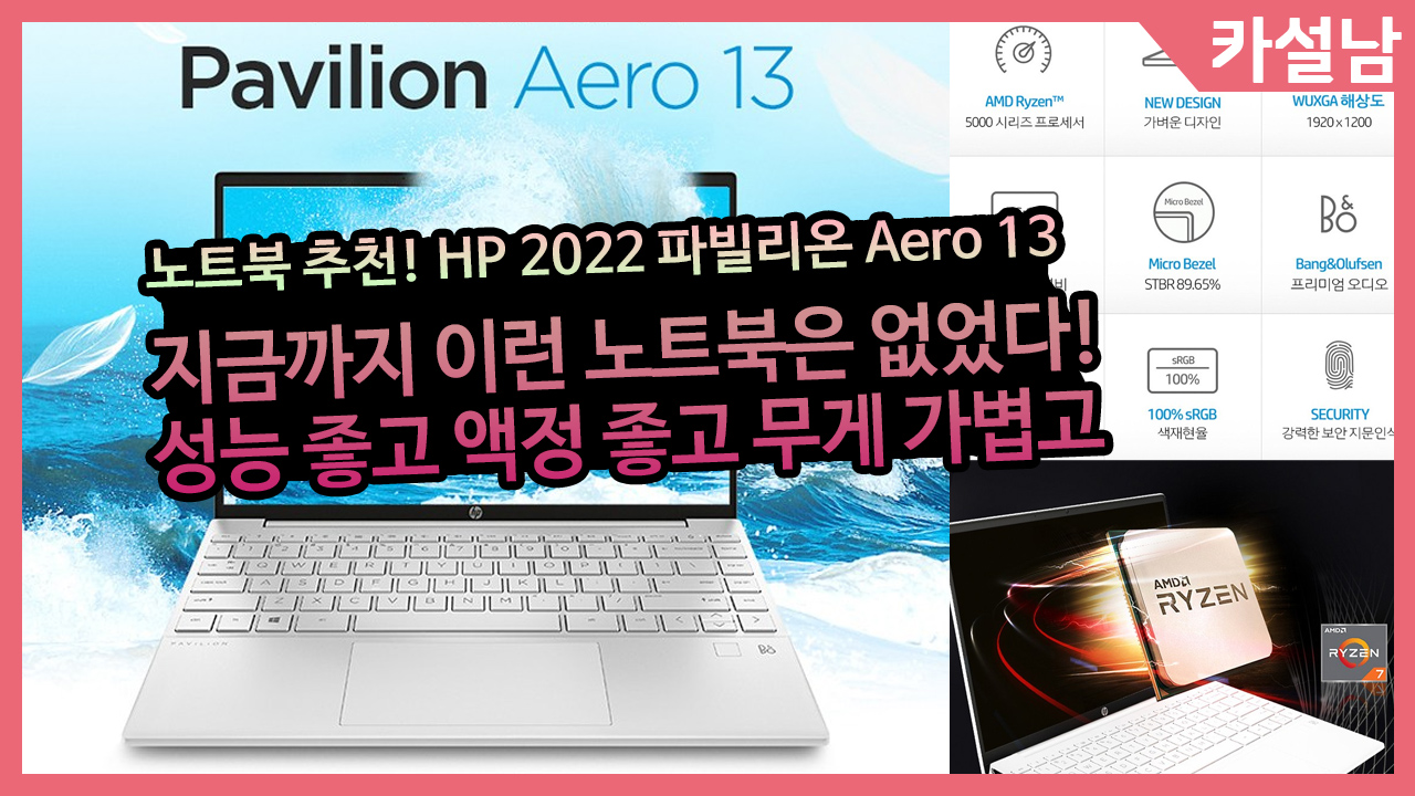 ✔ 제가 사용중인 HP 파빌리온 AERO 13 모델의 2022년형 제품이 굉장히 매력적으로 출시되었네요.